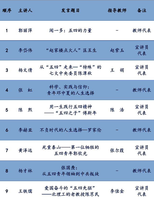 附:“从五四青年的人生选择到当代青年的时代担当”主旨发言列表