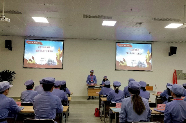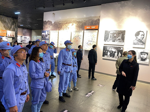全体教师在讲解人员的带领下,重温了中国共产党长征在贵州的历史。从粉碎“围剿”、被迫离开苏区、突破乌江、四渡赤水、陕甘会师等历史事件出发,通过生动的影像介绍,以及身临其境的3D沙盘展示,真实地感受到中国共产党长征时期条件的艰苦,更加凸显出共产主义信仰的伟大力量。