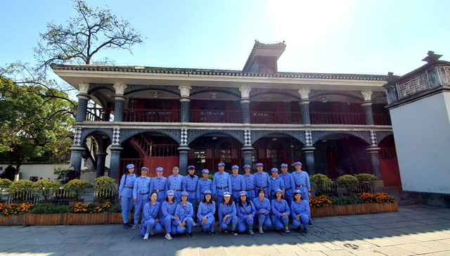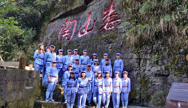 全体教师追寻习近平总书记的“红色足迹”,赴贵州省遵义市凤凰山的红军山烈士陵园进行了现场学习调研,这也是本次行程的第一站。瞻仰邓萍同志之墓,聆听年仅27岁在长征中牺牲职务最高的红军将领红三军团参谋长邓萍同志的故事,让我们铭记他为遵义战役的胜利做出的贡献。瞻仰红军英烈墙,深刻感受到革命先辈们坚忍不拔的信念,英雄可以无名,但不可以让他们无声!石碑无声,但英烈们的精神却是永放光芒的。拜谒红军坟,聆听了红军卫生员龙思泉与当地居民的感人肺腑故事,浓浓的鱼水之情,让我们牢记“全心全意为人民服务”宗旨。在女红军战士王泉媛的铜像旁,讲解老师饱含泪水深情地讲解了女红军坎坷的一生,坚韧不拔而光明面对人生,九死一生凸显巾帼不让须眉的豪情壮志。在烈士纪念碑前,感悟遵义会议精神,追溯“强渡乌江”、“遵义人民迎红军”、“娄山关大捷”和“四渡赤水”的历史。在红军烈士纪念碑前的广场,教师们敬献花篮、集体向革命烈士鞠躬致敬、集体重温入党誓词,以表达我们对在革命斗争中牺牲的无数红军烈士的崇高敬意。