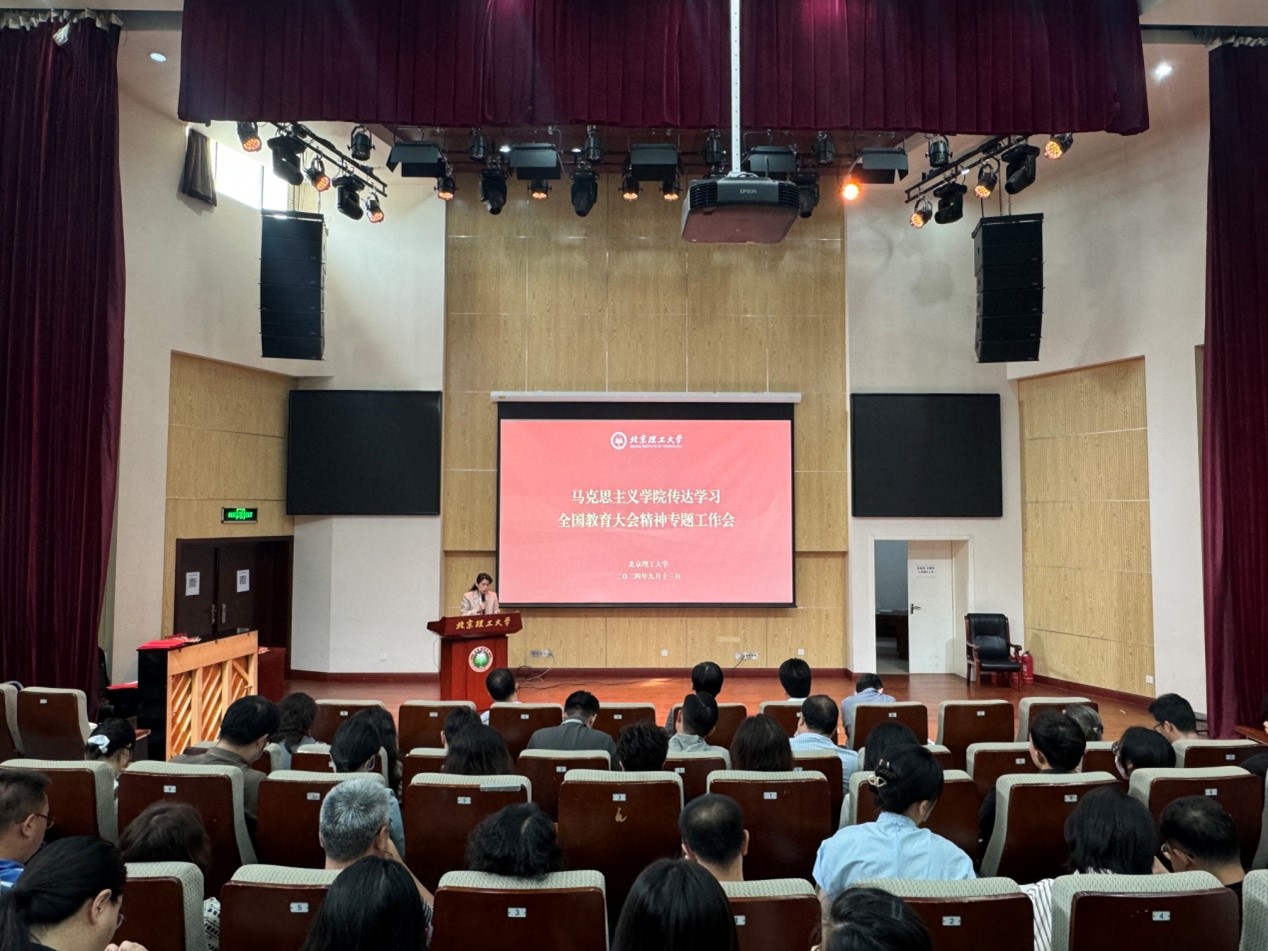 9月13日上午,澳门十大信誉好的网站传达学习全国教育大会精神专题工作会于良乡校区综合教学楼演艺厅召开。学院领导班子、全体教师参加会议。会议由学院党委副书记、副院长刘宇主持。