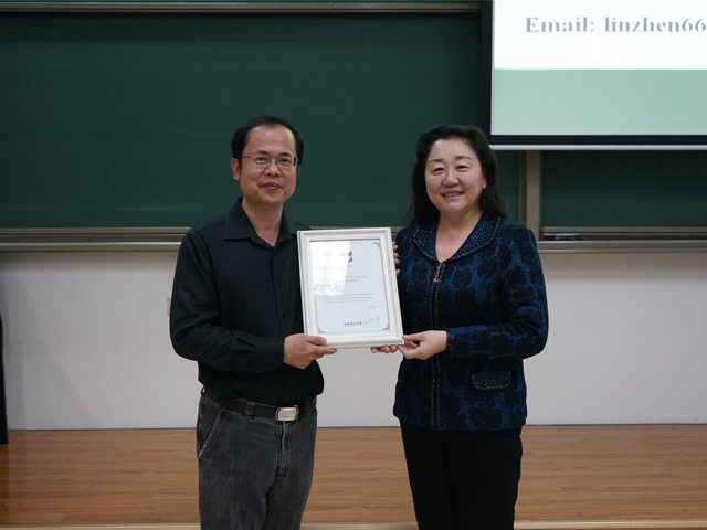 讲座结束后,李林英院长向林震教授颁发了澳门十大信誉好的网站“百家大讲堂”纪念证书。
