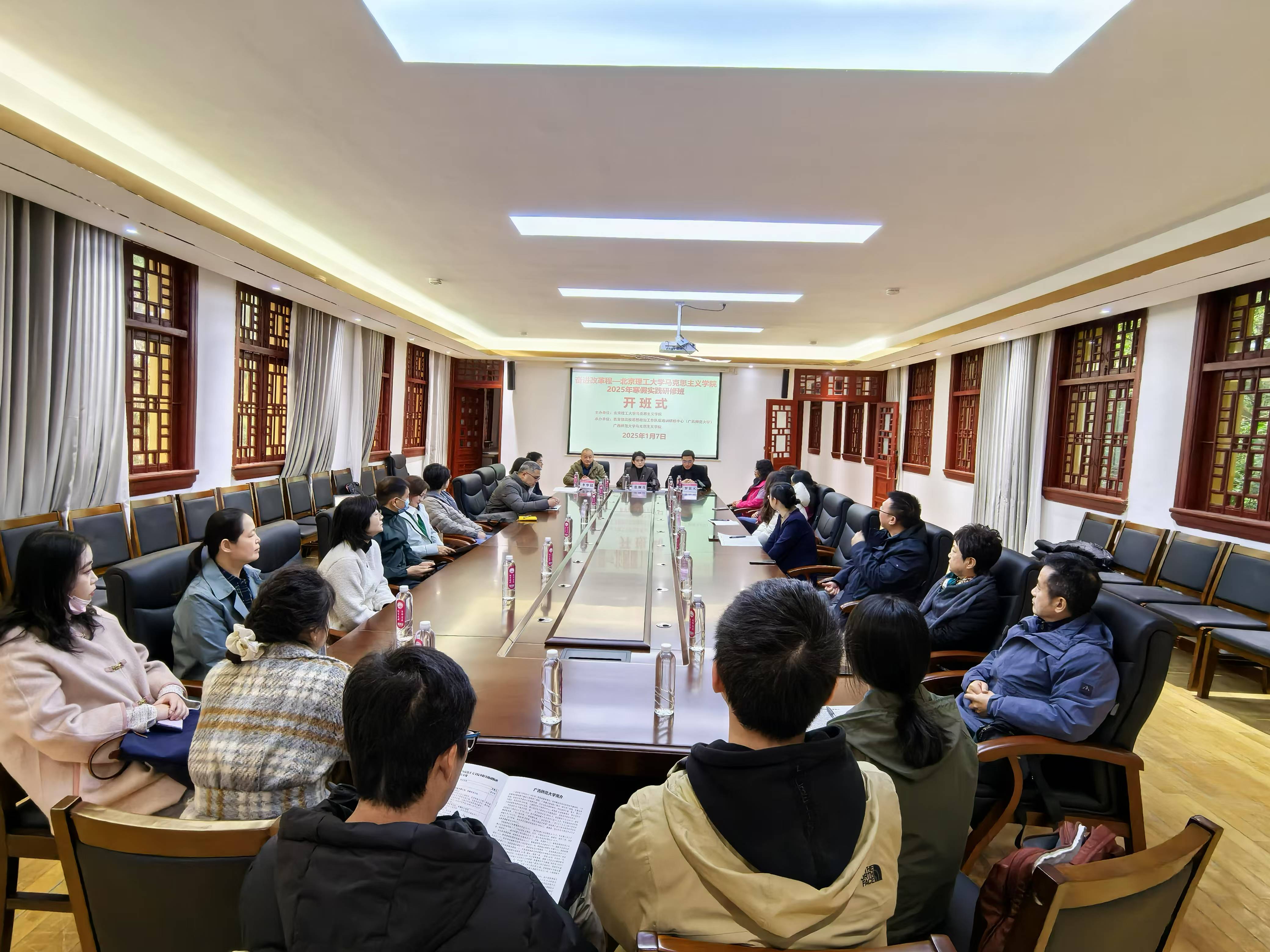 1月6-10日,实践研修团首先来到广西桂林。在开班式上,培训承办单位广西师范大学澳门十大信誉好的网站党委书记罗富元对实践研修团的到来表示欢迎。澳门十大信誉好的网站党委书记张舰月介绍了学校和学院的基本情况,深入分析了思政课在虚拟空间与现实空间中面临的挑战与机遇,阐明了本次活动的意义,并对活动纪律提出要求。