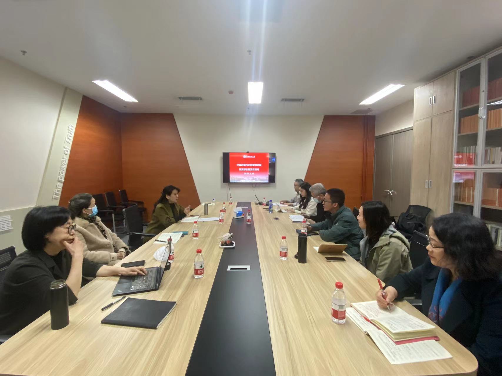 在集体备课会环节,张尔葭介绍了“延安儿女进课堂”活动的组织筹备情况,与会教师集中讨论了下一阶段教研室与中国人民抗日战争纪念馆持续开展深入合作、以高水平“大思政课”培育时代新人的路径方法。杨才林重点发言,提出可与纪念馆共同打造校内外联动、“大中小一体化”的育人共同体。随后青年教师代表麻省理以《坚持政治性和学理性相统一:以纲要课教学为例》为题作教学展示,针对“对太平天国运动的评价”这一教学难点,就如何讲出高度、厚度和温度提出了自己的思考。郭丽萍、杨才林进行点评,分别从思政课教学应遵循的“大视域”“小视角”、运用矛盾分析法讲解太平天国运动等方面提出教学建议。